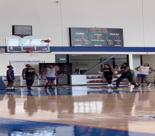 看来恢复不错!恩比德在训练时轮流和队友进行一对一单挑